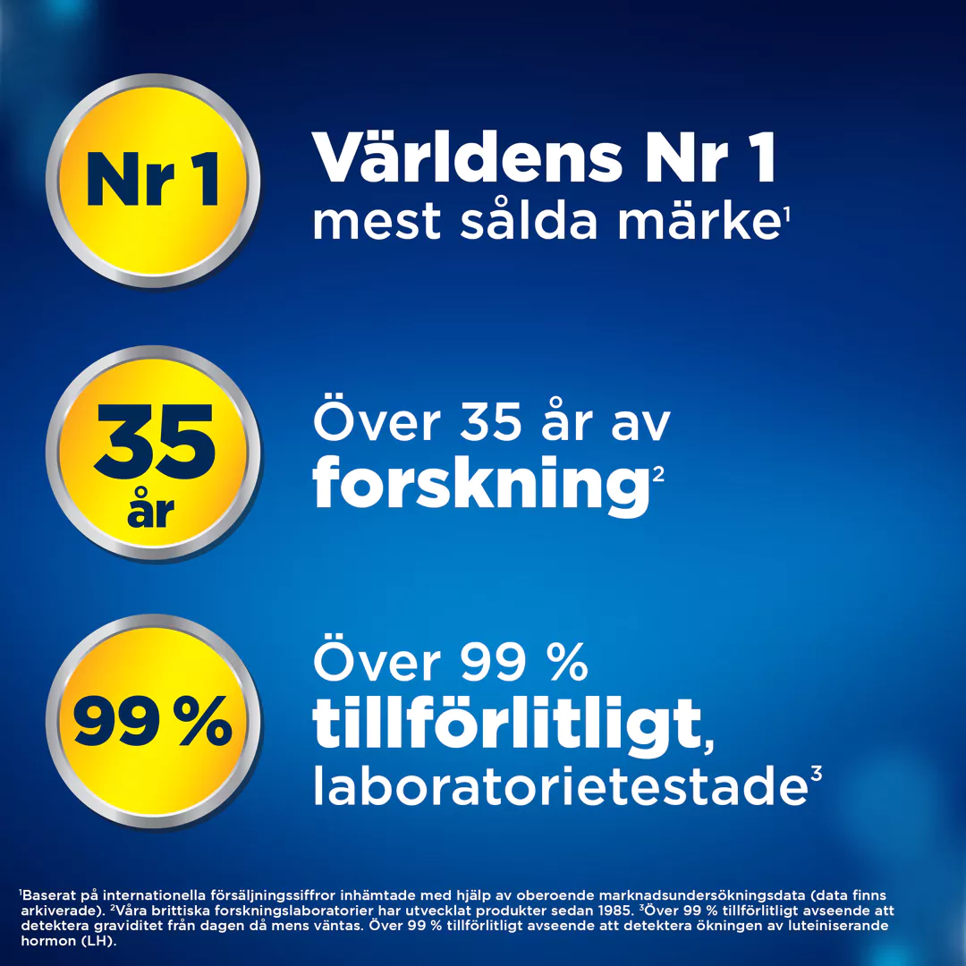 Eftersom spermier kan överleva i upp till fem dagar i din kropp, ökar dina chanser att bli gravid genom att ha samlag under de dagar som leder fram till ägglossning. För att maximera dina möjligheter till graviditet rekommenderas samlag både på dagar med hög och maximal fertilitet. Den digitala skärmen visar en tydlig smiley när de mest fertila dagarna har identifierats, så att du kan känna dig säker på att din kropp är redo. Clearblue Digital är över 99 % tillförlitligt när det gäller att upptäcka LH-ökningen.