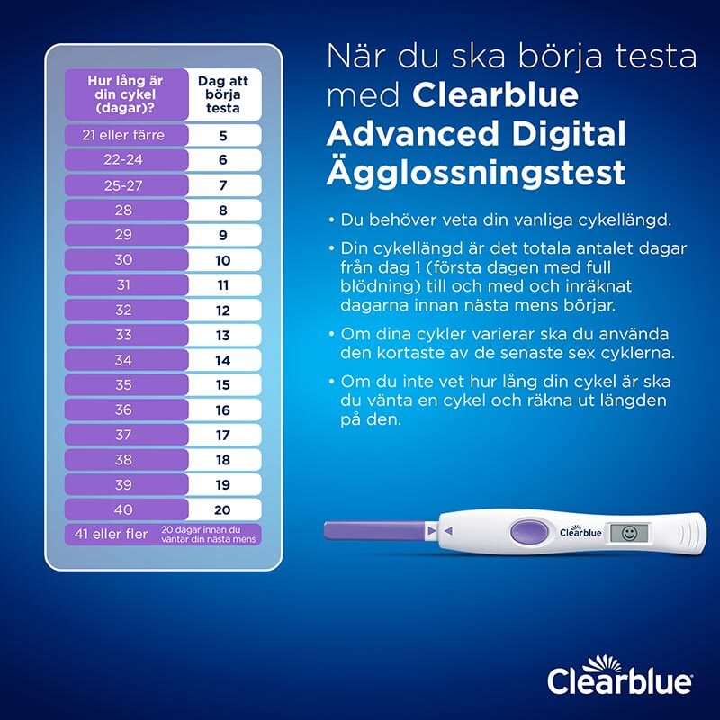 Clearblue Advanced Digitala Ägglossningstest är utformat för att vanligtvis identifiera fyra eller fler fertila dagar, vilket är den period då du har störst chans att bli gravid på naturlig väg. Genom att tillförlitligt mäta två viktiga fertilitetshormoner – östrogen och luteiniserande hormon (LH) – kan testet fastställa två dagar med maximal fertilitet samt dagar med hög fertilitet före dessa.