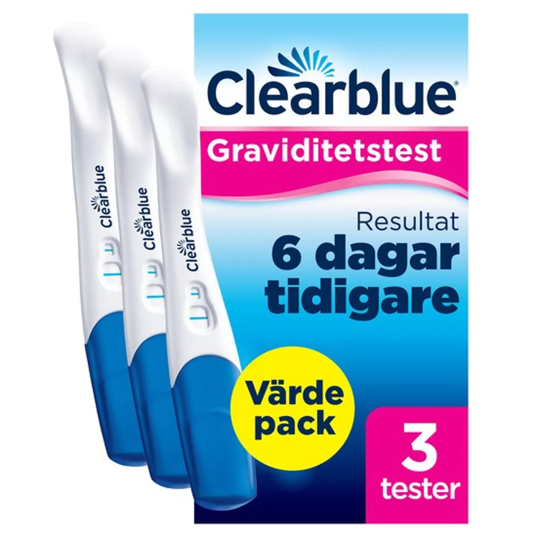 Clearblue® Ultratidigt är vårt mest känsliga test, vilket innebär att du kan testa upp till 6 dagar före utebliven mens (det vill säga 5 dagar före förväntad mens).